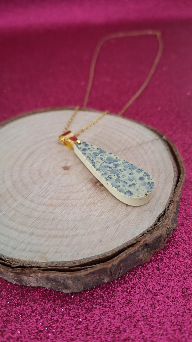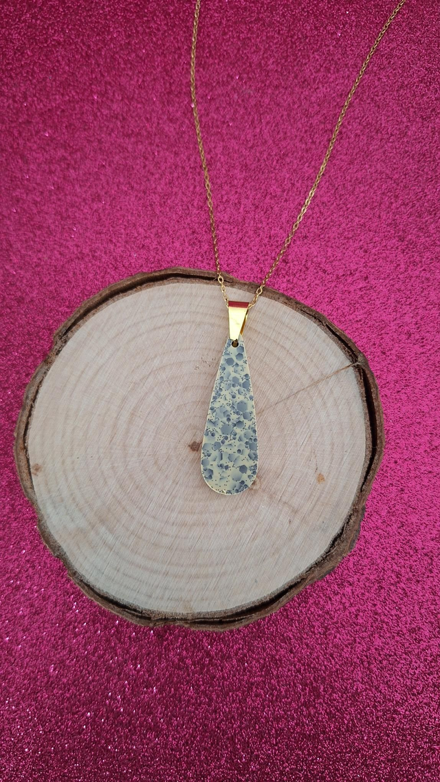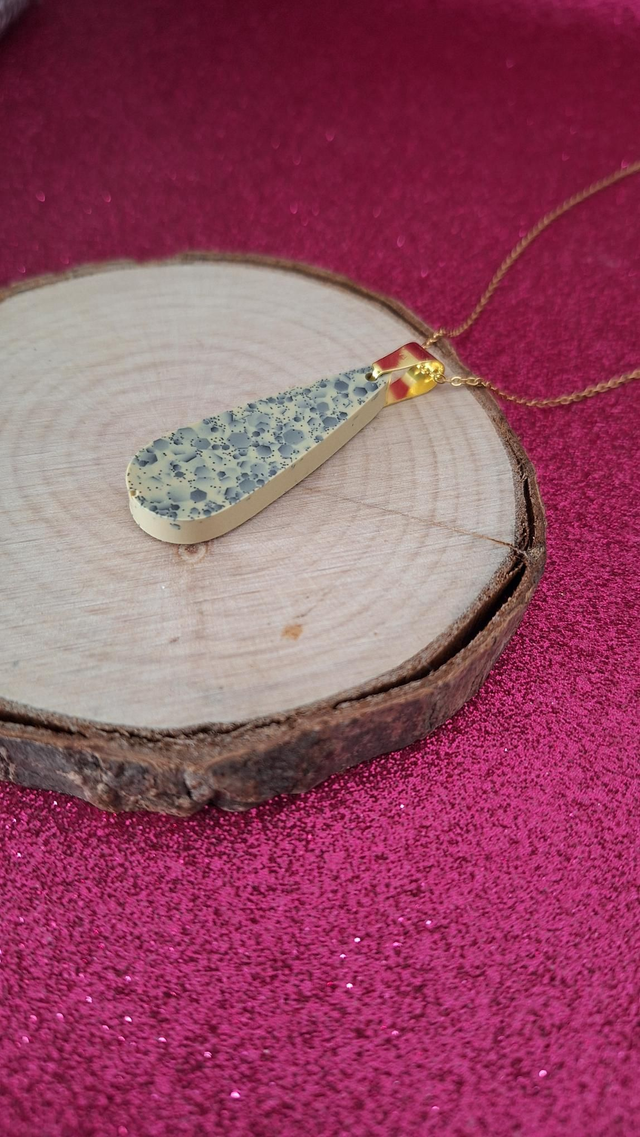 Collier doré gouttes beige et paillettes noires