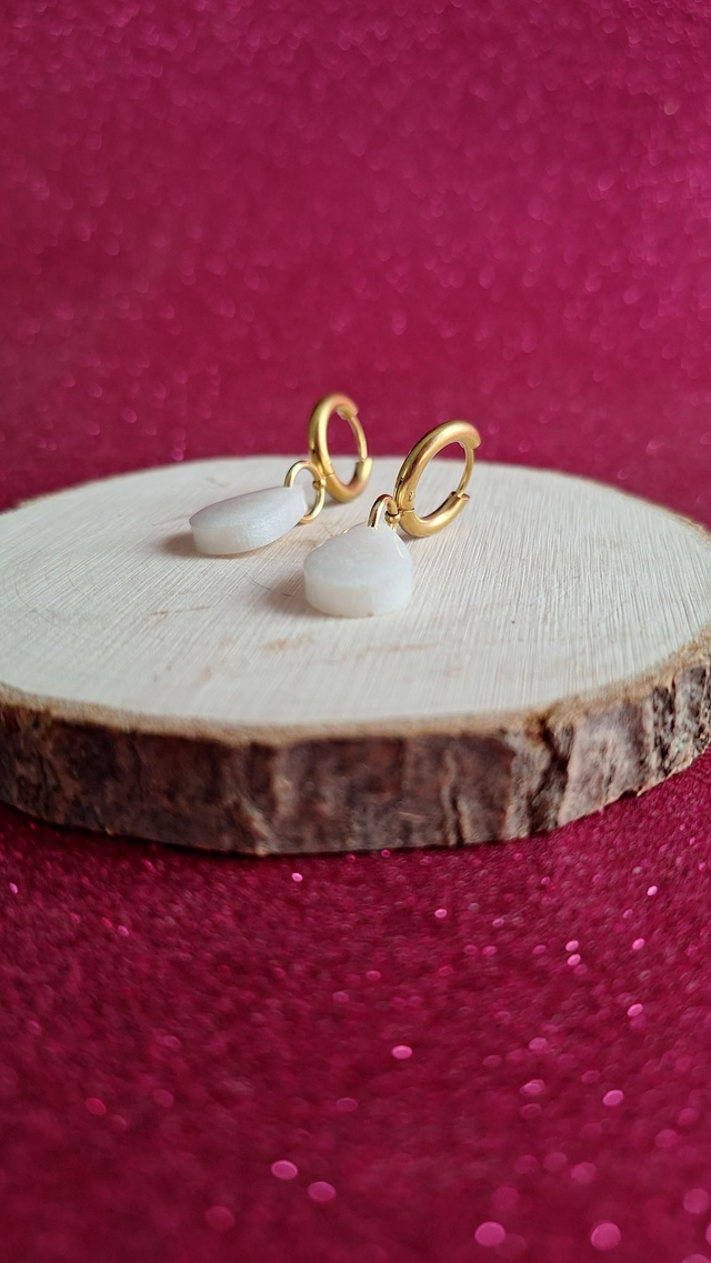 Créoles dorées cœurs paillettes roses et feuilles d'or