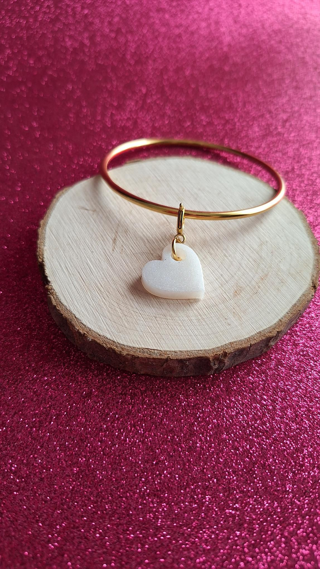 Jonc doré 68mm cœur amovible blanc